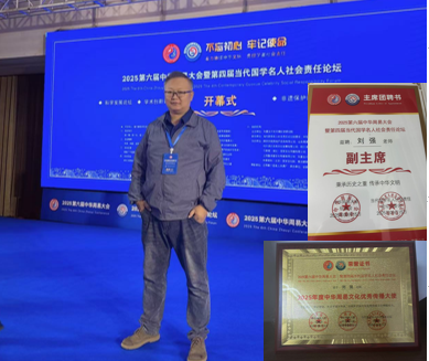 刘三百(刘强)老师应主办方邀请参加此次中华周易国学论坛,并被此次大会聘为论坛副主席,及授予“2025年度中华周易文化优秀传播大师”荣誉证书。
