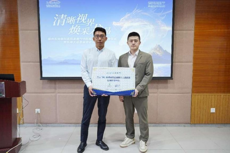爱博诺德南中国销售总监陈睿、东南眼科医院集团赵一鸣总经理进行龙晶®PR区域培训中心授牌