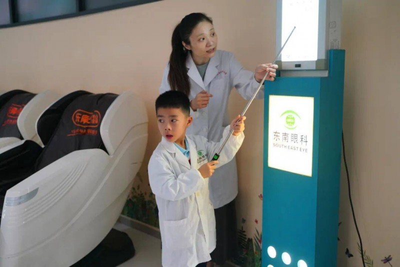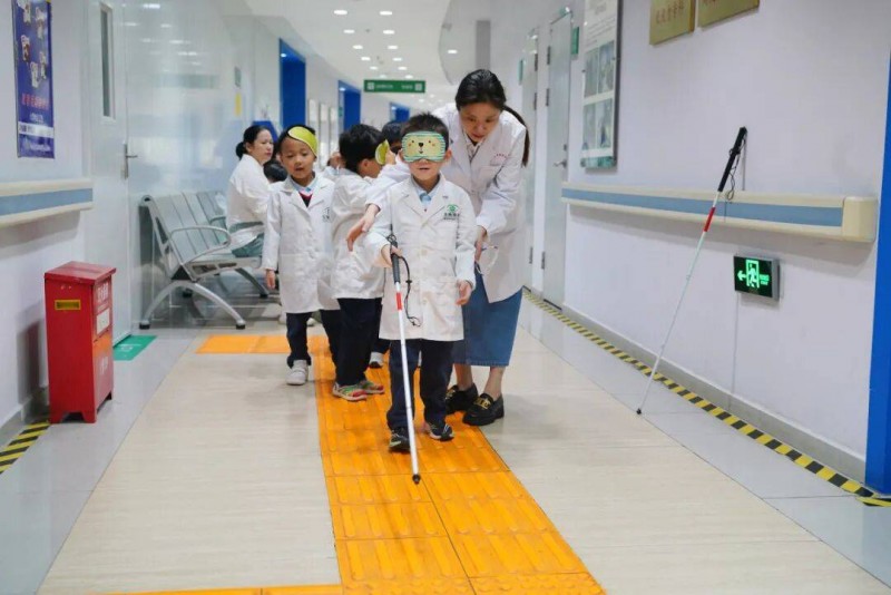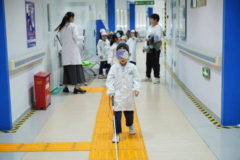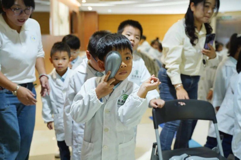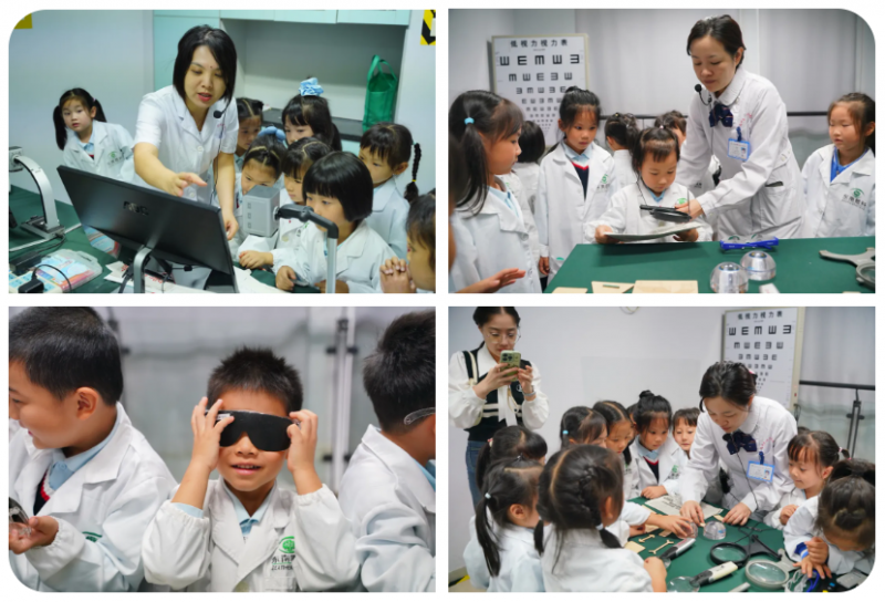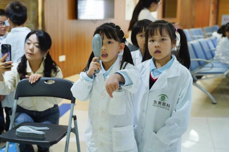 穿上了白大褂,孩子们化身眼科医生,观摩各类眼科检查设备,体验自己查视力,沉浸感十足。