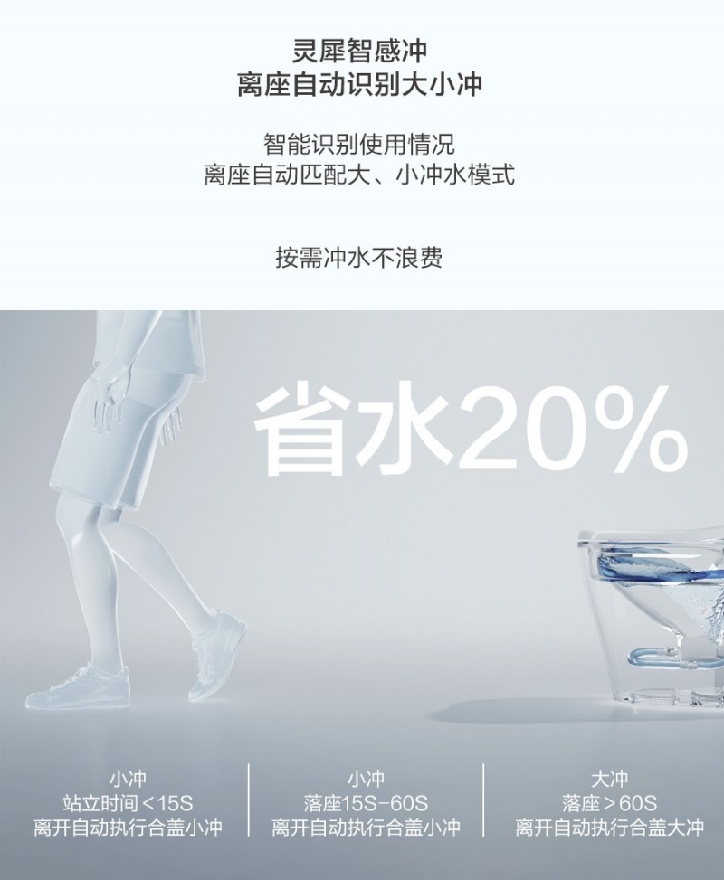 安华S3S智能马桶还采用了智漩泵冲技术,高性能增压泵带来强劲水流,实现360°全方位冲刷陶瓷表面,配合底部增压喷射,形成强力虹吸,排污彻底、干净利落。即使遇到停电情况,外置电池盒也能保证正常冲水,让使用不受限制,安全便捷。此外,安华S3S智能马桶还拥有灵动智慧冲功能,通过微波感应、PCB智能识别与AI算法的协同作用,系统能精准识别使用场景。站立超过15秒或者落座15-60秒,识别为小冲,落座超过60秒识别为大冲,整个流程无须用户干预,实现节水与卫生的双重保障。