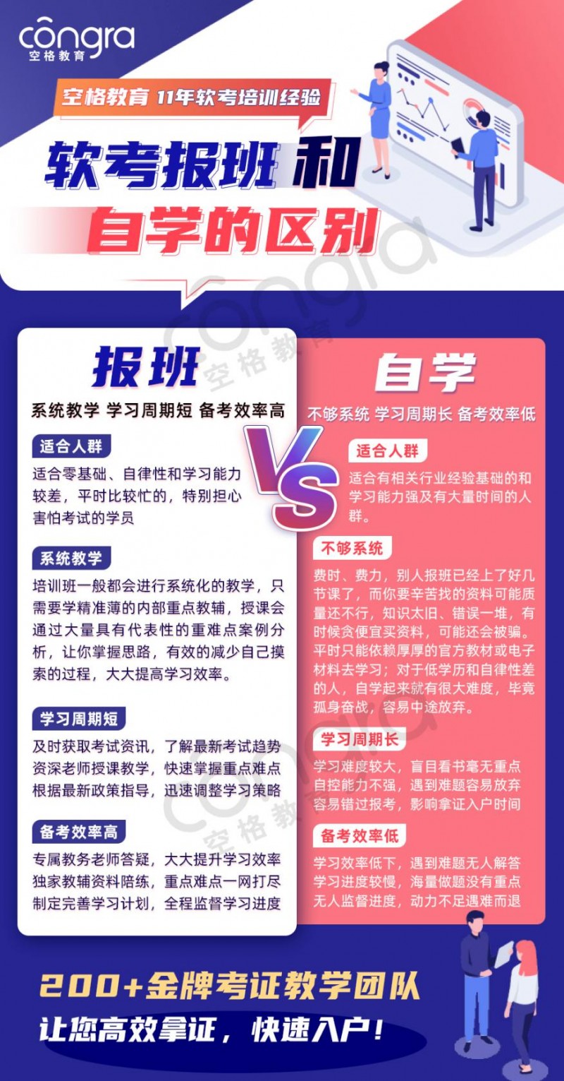 报班之路:系统化教学,直击考点,避免无用功;有资深讲师答疑解惑,突破学习瓶颈;提供科学的备考规划与优质的学习资料;有教务督学与学习氛围,保持学习动力。