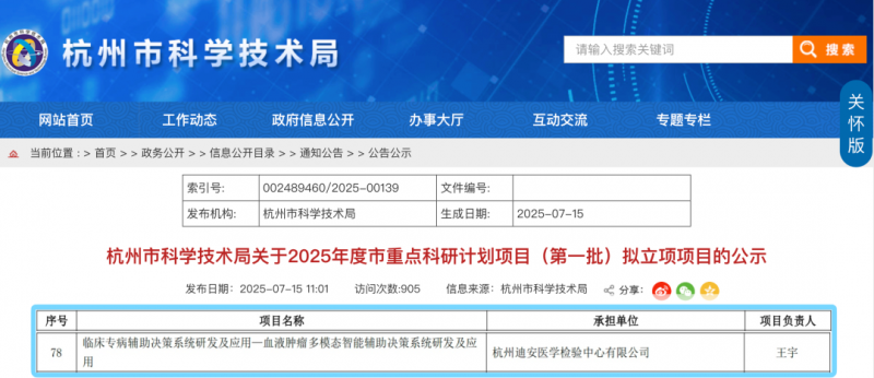 AI技术重构血液肿瘤医疗范式:迪安诊断项目入选2025年度杭州市重点科研计划