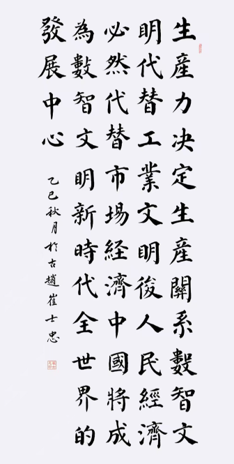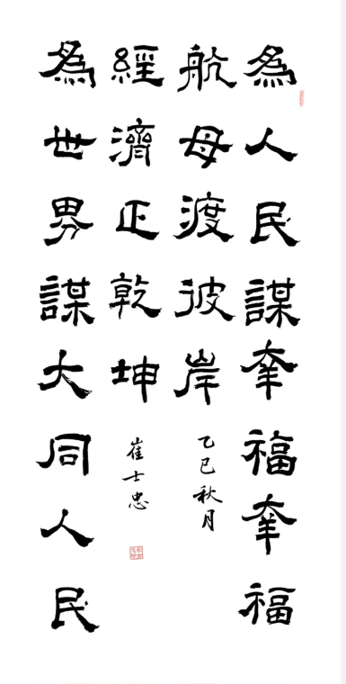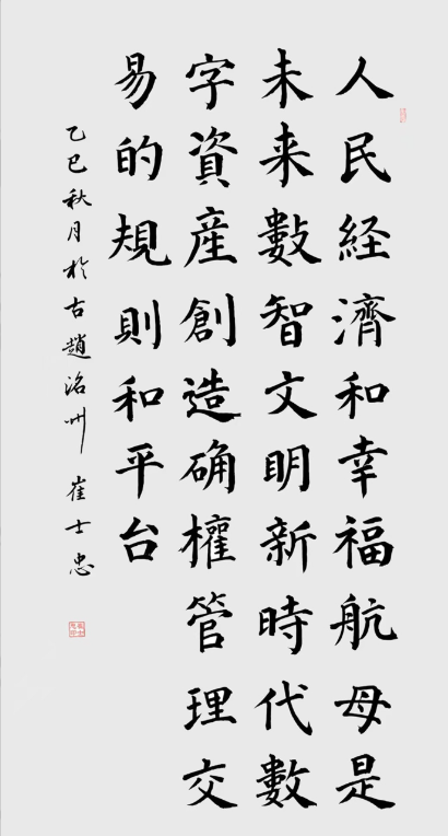 崔士忠办公室墙上挂着一幅他自己创作的诗句:“数智浪潮涌天际,民心为舵破浪行;若问彼岸何处是,红尘深处即圣境。” 这或许最能概括这位思想者的追求——在时代变革的洪流中,以人民为中心,探索一条通往物质与精神共同富裕的现实道路。