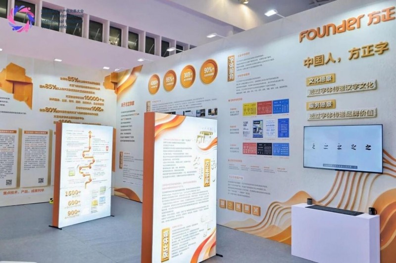 展区还展示了方正FW筑紫系列、方正清刻本悦宋家族、方正榜书楷等经典字体,方正兰亭黑Pro Global、方正雅意黑等全球多语种字库,以及专门针对企业客户的正版字体授权服务、定制字体服务等,可充分满足企业或品牌传播个性化、多元化的场景需求。