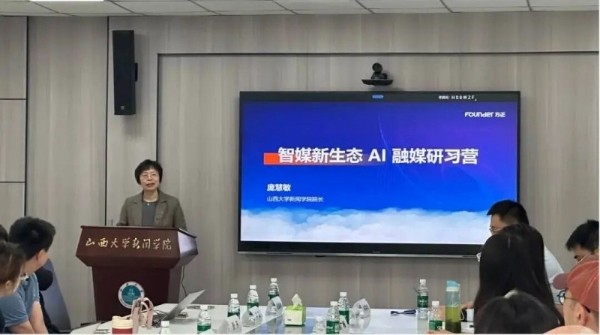 在研习营开幕式上,山西大学新闻学院庞慧敏院长发表致辞。她表示,本次校企合作的核心在于人工智能技术与新闻教育的深度融合,希望通过方正电子提供的“魔方”AIGC实训平台,打造“理论教学-技术实训-成果转化”的全方位、全链条人才培养体系。