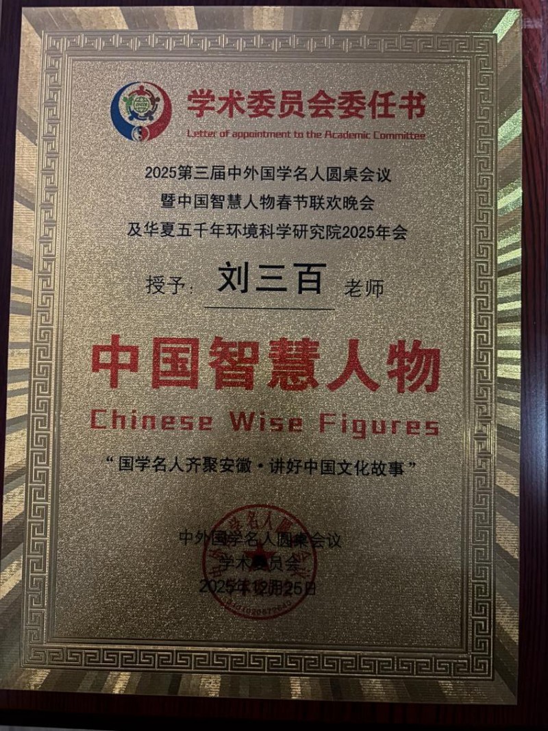 热烈祝贺刘三百老师荣获中外国学文化杰出传播者等荣誉称号