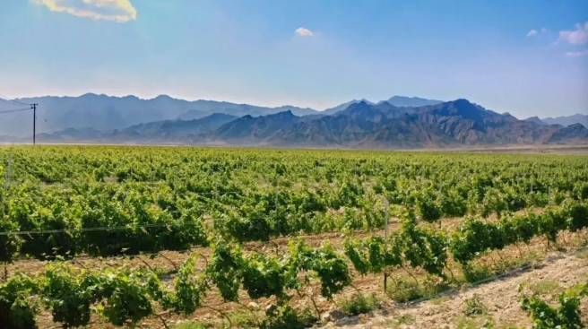 此地与法国波尔多、美国纳帕谷均位于北纬38度附近,这一纬度被全球公认为酿酒葡萄的黄金生长带。得益于黄河的慷慨灌溉、贺兰山的坚毅守护,以及充足的光照和独特的洪积扇砾石土壤,这里成为了名副其实的“天赋宝地”。三十年前,这里还是一片“飞鸟不至、寸草不生”的戈壁荒漠。