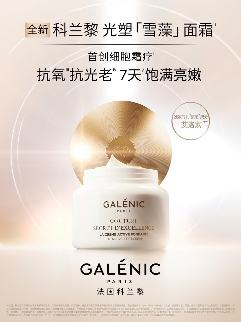 同时,Galenic法国科兰黎将产品研究与专业护理场景相结合,联合国际医研专家及前沿科技力量,将卓效护肤品与细胞级年轻化设备进行协同应用,形成更具专业深度的护理项目,为消费者带来优雅高效的全方位护肤体验。以雪藻细胞霜疗为例,该项目以科兰黎光塑「雪藻」面霜为核心,配合独家“光塑提升手法”与定制化仪器,实现“亮肤色、嫩肤质、塑轮廓”的三重光塑效果。