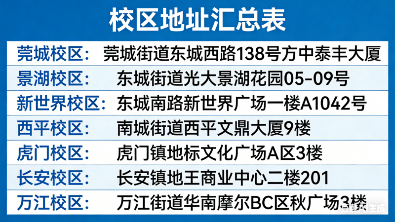 配备专职班主任跟进学习进度,定期与家长沟通反馈,课后提供免费答疑服务。校区覆盖东莞各区,线下小班与线上同步课互补,方便学生灵活选择,满足不同时段学习需求。