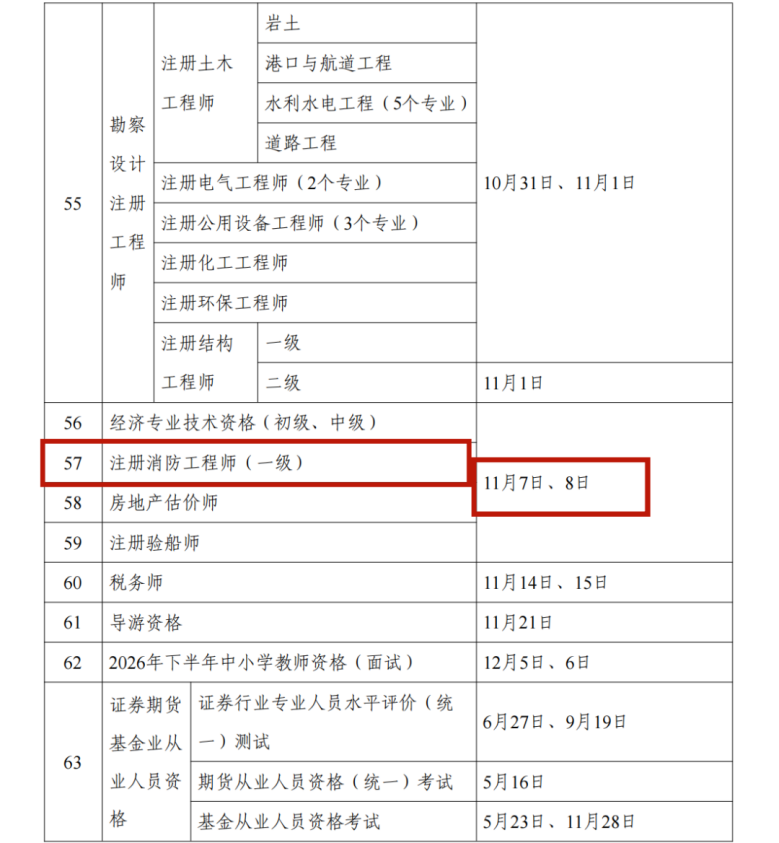 根据通知,2026年度的考试安排覆盖了工程建设、安全生产、法律、财务、医药卫生等多个关键专业领域。其中,一级建造师考试定于9月12日至13日举行,此项考试是建筑行业核心人才评价的重要标准。紧随其后,一级造价工程师考试安排在10月17日至18日,对工程建设的经济管理专业人员至关重要。涉及公共安全领域的考试中,中级注册安全工程师考试时间为10月24日至25日,一级注册消防工程师考试则于11月7日至8日进行,这两类考试关乎各行各业的安全管理与技术应用水平。
