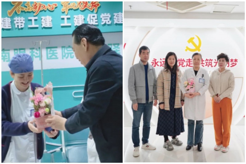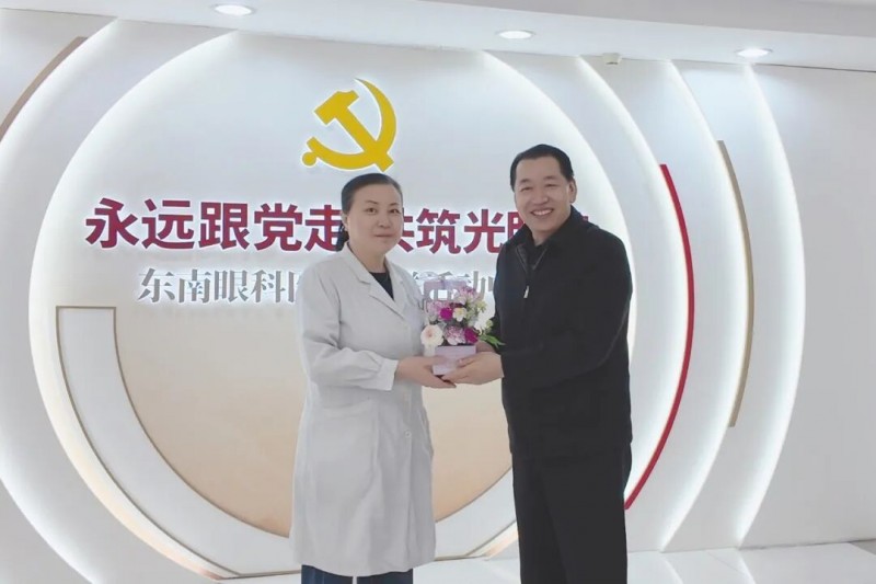 3月6日,在节日来临之际,东南眼科医院工会主席魏金鑫与女职工委员会主任陈清英还为优秀的女职工代表送上了鲜花,向她们致以节日的问候与美好祝福,感谢大家在岗位上的坚守与奉献。