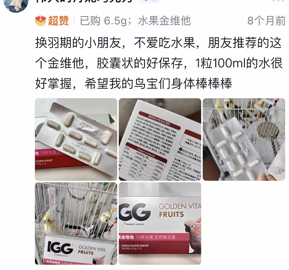 产品的卓越功效也得到了广大养宠人士的亲身验证。一位资深鹦鹉养殖爱好者分享道:“此前家中鹦鹉换羽期常出现新羽生长迟缓、质地脆弱易断的问题,尝试使用IGG水果金维他后,效果十分显著,现在鹦鹉的新羽色泽鲜亮、韧性十足,健康状态肉眼可见。”