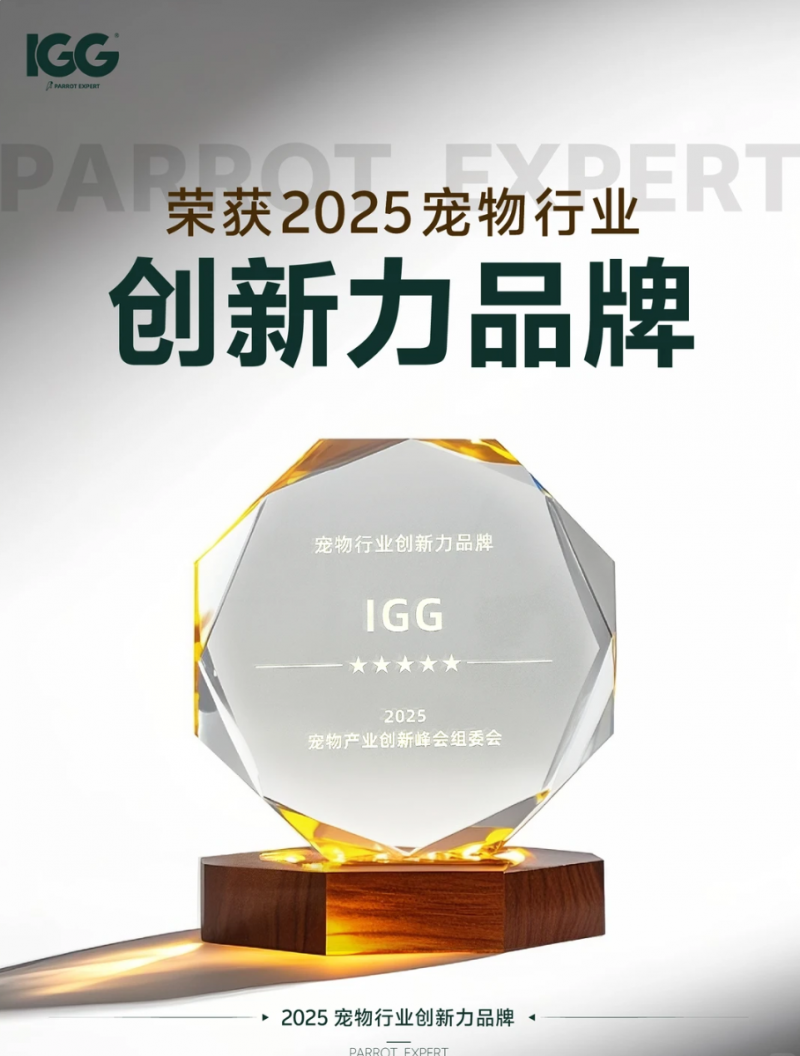 凭借扎实的产品力与创新的市场策略,IGG已斩获“2024-2025年度标杆品牌奖”“小宠异宠年度创新奖”等多项荣誉,坐稳鹦鹉营养领域品质标杆地位。