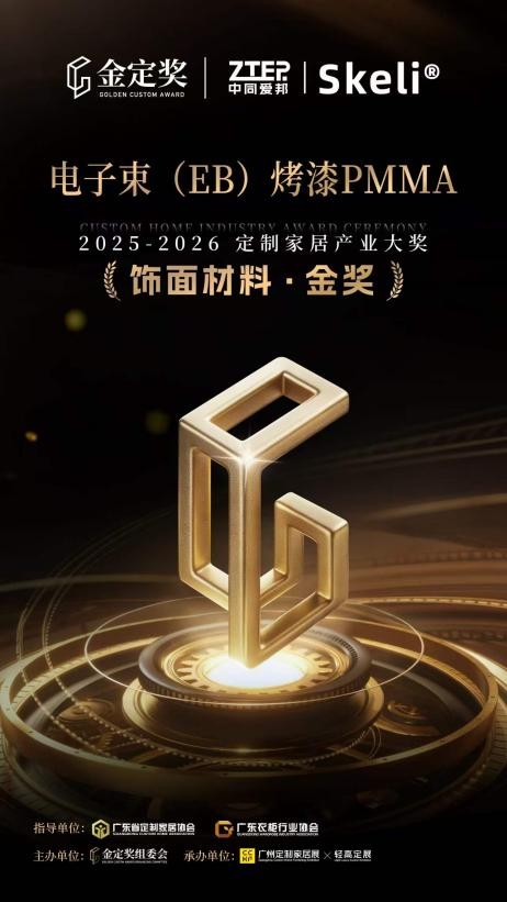 中同爱邦依托央企背书,构建了“技术研发-场景应用-终端服务”产业闭环。它拥有全球首条EB烤漆板固化生产线,配备3台电子束固化加速器,品控与产能全球顶尖;在第15届广州定制家居展暨轻高定展重磅亮相后,成为国内唯一被新华网、中国日报、大江网等主流媒体相继报道的EB板材品牌,旗下中同爱邦-Skeli®电子束(EB)烤漆 PMMA更一举斩获2025-2026定制家居产业金定奖“饰面材料金奖”,品质广受高端定制圈和官方高度认可。
